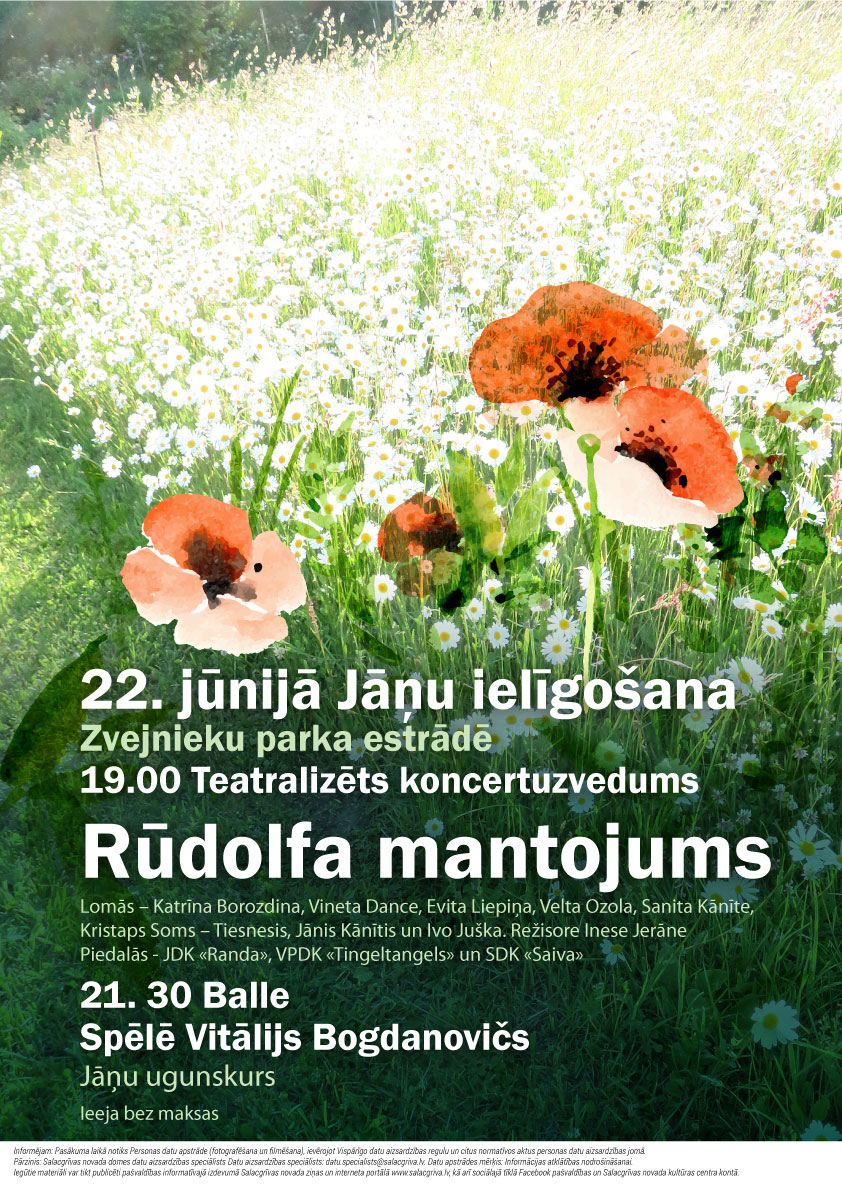 22.jūnijā pl. 19:00 Zvejnieku parkā Jāņu ielīgošanas pasākums.